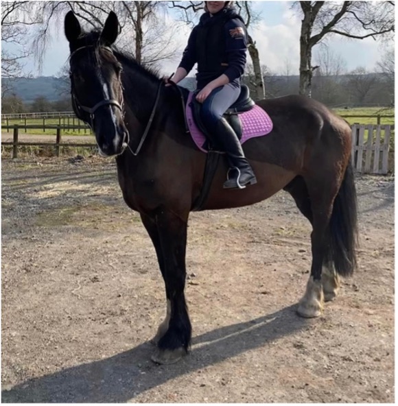 15.3hh black mare. Betty is one of the newest members of the team and is already proving a hit with her fun forward going nature. Moving lovely on the flat but she is also proving that cobs can jump! A lovely asset to the yard with a friendly whinnie for all who enter the stable block.